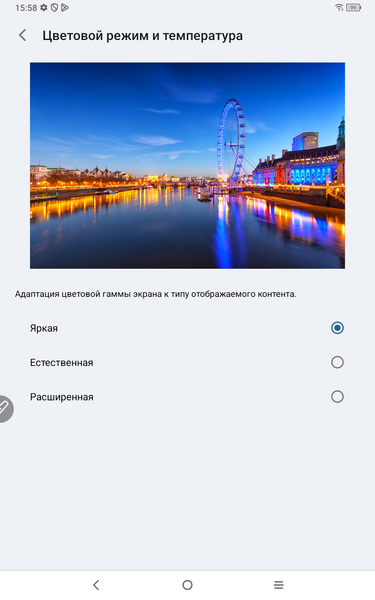 Фотографии выше получены при активном профиле Яркая в настройках экрана, всего их четыре: