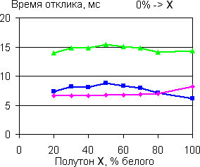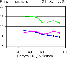 | Времена отклика при переходе между полутонами с разницей 20%. | |