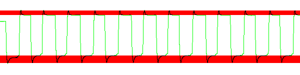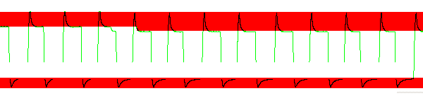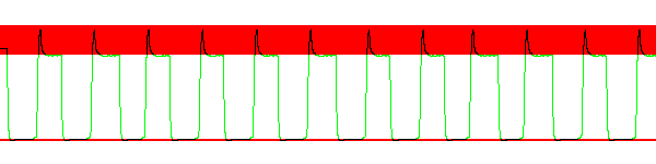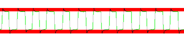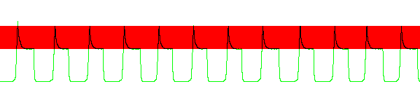 Сначала обратим внимание на красный фон — это диапазон ошибочной (избыточной или недостаточной) яркости. Так работает разгон путем повышения напряжения, подаваемого на кристалл для ускорения изменения его свойств. В данном случае практически любая операция ведет к превышению необходимых границ, что и создает те видимые артефакты с белыми тенями, о которых мы уже упомянули.