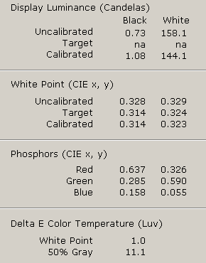 158 Кд это несомненно мало для белого цвета, а вот 0,73 для черного вполне нормально. На выходе это дает соотношение 256:1 или без малого половину от заявленных в паспорте монитора 500:1.