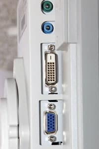 На задней части попарно расположены DVI-D и D-Sub входы для видеосигнала, а также разъемы для входящего стереозвука и штекер для наушников. Последний все же хорошо было бы вынести на переднюю панель.