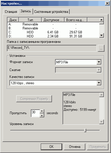 Поддерживается запись в mp3 с максимальным битрейтом 224 Кбит/с при частоте дискретизации 48 кГц.