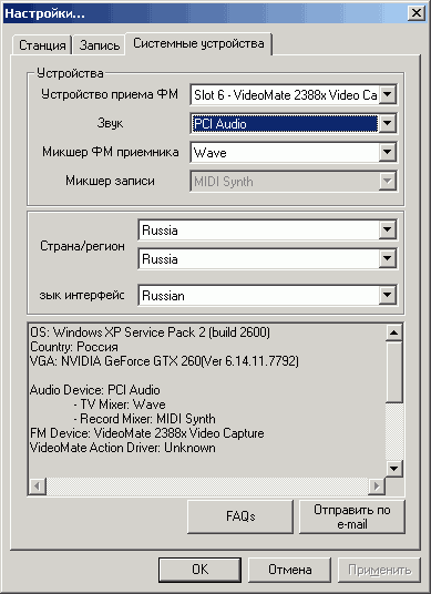 Для работы в FM-режиме используется отдельная программа. Во время запуска TV-приложения при работе Compro FM 2 и наоборот работающая программа закрывается автоматически.