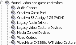После установки в разделе Sound, video and game controllers диспетчера устройств можно обнаружить VideoMate CX2388x AVS Video Capture.
