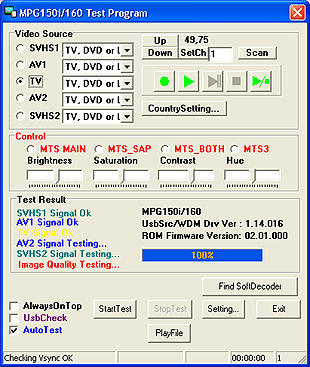 Забегая вперед, расскажу что в папке C:Program FilesDVD_EncoderMPG160 имеется еще одна нигде не обьявленная служебная программа iCompCapTest. Судя по ее пёстрому содержимому, она предназначена для диагностики настройки и производительности тюнера: