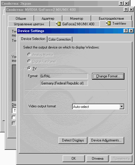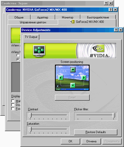 Особенности подключения и настройки TV-out видеокарт класса GeForce4Ti и GeForce4MX (GeForce2MX)с технологией TwinView (nView)