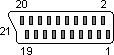 На схеме представлен вид разъема SCART с фронтальной стороны переходника. Нумерация контактов, как мы видим, идет зигзагом.
