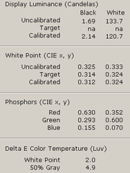 Калибруем датчик Pantone, проводим замеры цветопередачи при следующих настройках яркости и контраста:![]() данные для заводских установок | ![]() |