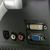 Сзади находятся разъемы для D-Sub, DVI и аудио-вход. На передней панели — коннектор для наушников.