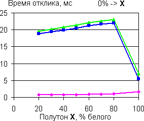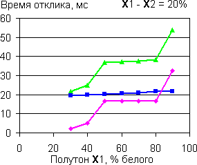 | Времена отклика при переходе между полутонами с разницей 20%. | |