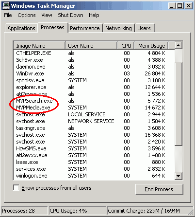 Главное достоинство MediaMVP — минимальное использование ресурсов компьютера-сервера. При воспроизведении тестового файла с битрейтом 9 Мбит/с загрузка процессора находилась в пределах 0-2%. Запущенный параллельно 3DMark'2003 отклонений от обычных результатов не показал.