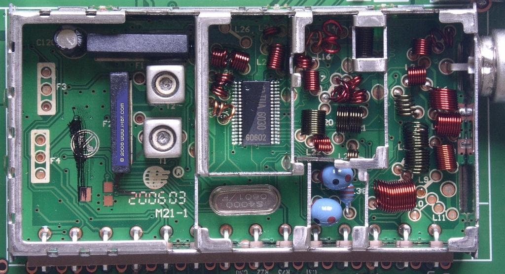 WinTV-PVR 150 оснащён ВЧ-блоком TCL MPE05 от Huizhou TCL King High Frenquency Electronic Co, выполненным в форм-факторе Mk3. Можно заметить, что дизайн PCB проектировался с расчётом на приёмники формата Mk2.