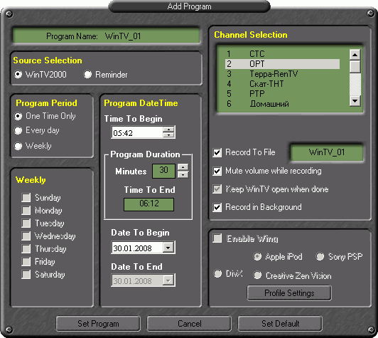 Логика настроек отличает WinTV от большинства программ, диктующих индустриальные эргономические стандарты. Русский язык интерфейса не поддерживается.