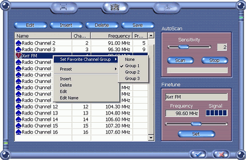 Со времен обзора Leadtek WinFast Cinema интерфейс и возможности программы WinFast FM никаких изменений не претерпели.