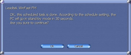 перед переходом в Standby дается возможность отмены (аналогичная возможность, кстати, предоставляется планировщиком и в TV-режиме).