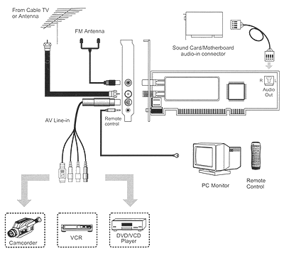 Причем, это не только реверанс в сторону владельцев соответствующих корпусов, такой подход имеет и чисто технических преимущества, в частности, удаленность помехообразующих элементов, от радиоблока. Однако, в жертву низкопрофильности принесен полный комплект разъемов, так что связь с внешним миром осуществляется посредством одного разъема 9-pin с соответствующим переходником-разветвителем для аудио- и видеосигнала. Аналогичное решение встречалось на том же Leadtek WinFast Cinema, но обусловлено было другими причинами. А вот линейный аудиовход приказал долго жить, съем аудиосигнала с тюнера возможно только при подключении к AUX-разъему звуковой карты. С одной стороны, имея такой вариант, в здравом уме вряд ли кто будет использовать подключение к линейному входу, с другой же — та самая пресловутая возможность выбора.