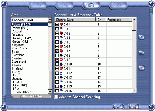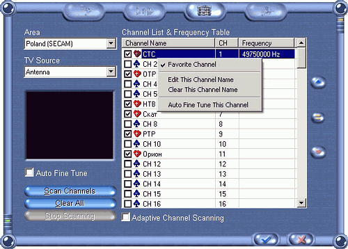 Сканирование эфира в WinFast PVR при вполне логичном, на мой взгляд, выборе Russia (SECAM) (что такое Russia (PAL), хотел бы я знать) привела к отсутствию нескольких каналов, к тому же найденные почему-то получили номера +1 относительно нашей сетки, то есть 2 вместо 1, 4 вместо 3 и т. д.