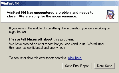 Без ложки дегтя тоже не обошлось, почему-то в процессе записи WinFast FM иногда выпадает на рабочий стол вот с такими ошибками.