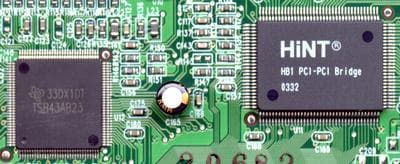 Дизайн, как мы видим, сильно отличается от TV 2000 Expert. Нижнюю часть платы занимают устанавливаемый на большинство материнских плат контроллер FireWire TSB43AB23 от Texas Instruments и мост PCI-PCI от HiNT, обеспечивающий работу двух устройств на одной шине.