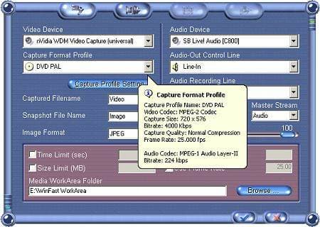 Раздел меню Capture Settings предоставляет как выбор готовых профилей для сохранения захваченного материала,