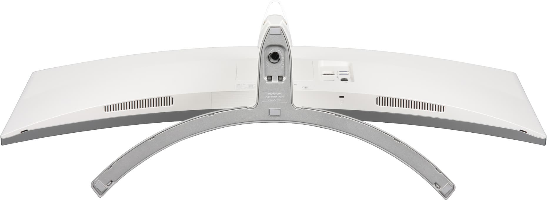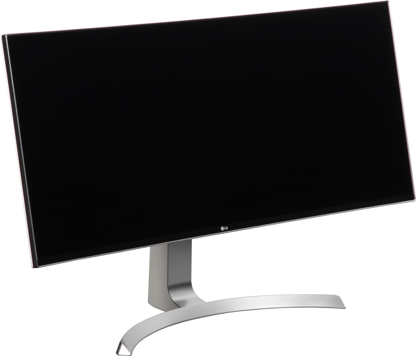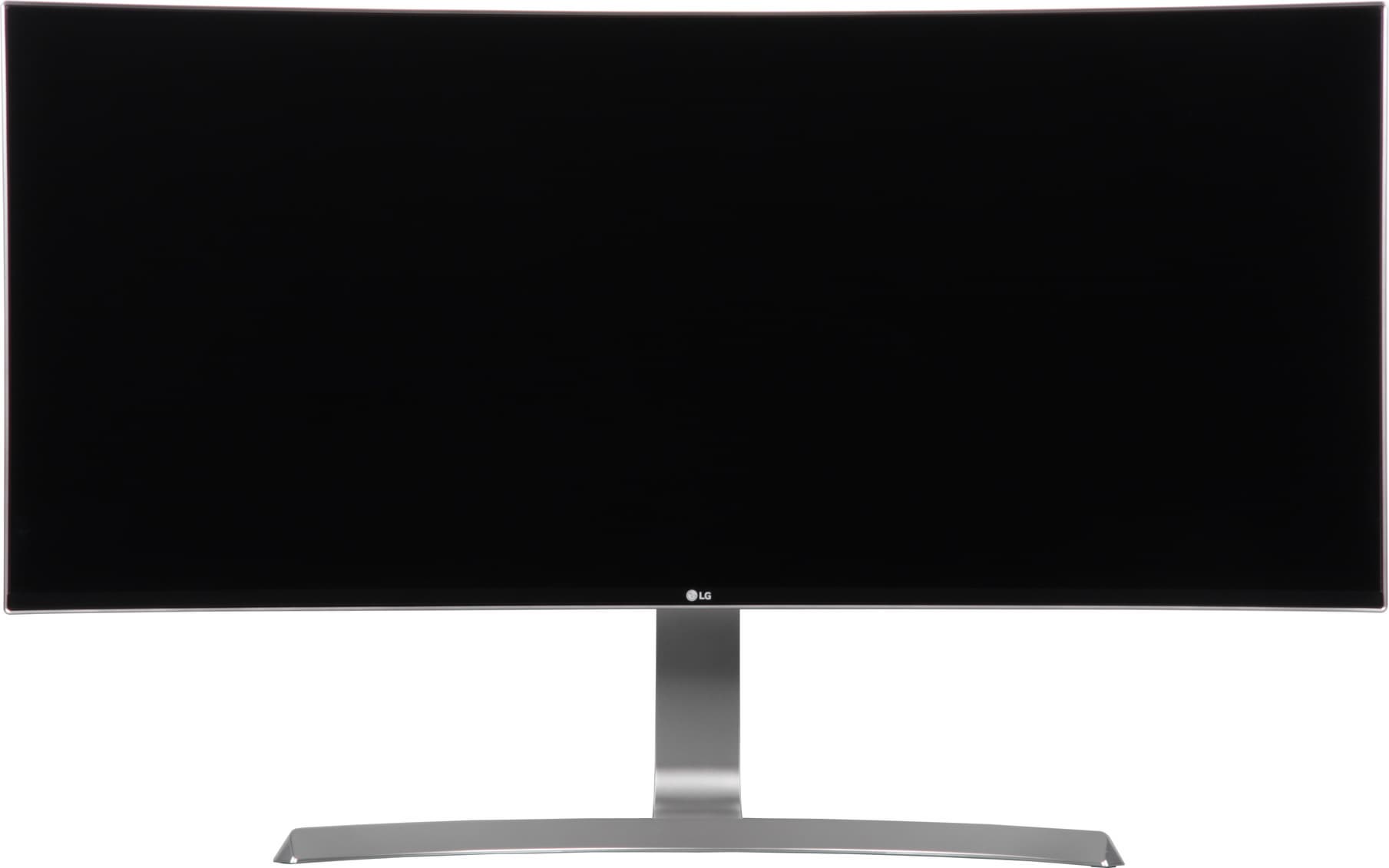 Плоскость экрана выраженно изогнута по цилиндру так, что правый и левый край выдвинуты вперед. По отражению в экране видно, что изгиб более-менее равномерный на большей площади, его радиус составляет порядка 1,5 метров, и только по бокам в вертикальной области около 4-5 см экран скорее плоский, а у самого края даже слегка выпуклый. Фронтальная поверхность экрана выглядит как монолитная черная полуматовая (зеркальность отчасти присутствует) поверхность, ограниченная снизу относительно узкой стальной рамкой с матовым черным покрытием, а по периметру — узкой окантовкой из пластика с серебристым покрытием.