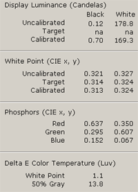 Снова заводские настройки сильно отличаются от установленной температуры 6500К. Но после калибровки значения приходят к норме.