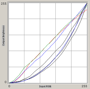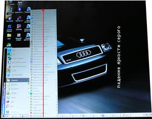 Взяв тестовый HTML LCD-тест мы обнаружили, что можно различить светлые полутона с 252.252.252 и темнее выше 3.3.3. Найти отличия 1.1.1 от 0.0.0 и 2.2.2 от 0.0.0 не удалось и в фотошопе на примере двух соседних прямоугольников размером 500×1000 пикселов.