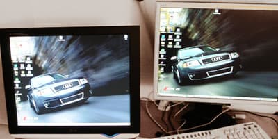 Рядом стоит откалиброванный 19″ ЭЛТ-монитор NEC MultiSync FP950, используемый для визуального сравнения цветопередачи и скорости отклика, а также LCD-монитор NEC 2070NX.