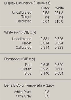 Используется эталонный откалиброванный LCD-монитор NEC MultiSync LCD2090UXi, используемый для визуального сравнения цветопередачи и скорости отклика.