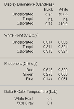 Используется эталонный откалиброванный LCD-монитор NEC MultiSync LCD2090UXi, используемый для визуального сравнения цветопередачи и скорости отклика.
