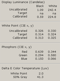 | яркость 75, контраст 50 | 5790 | 5590 | 5790 |