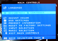 Меню, по сравнению с 190B4, почти не изменилось: все тот же канонический вертикальный список с удобным листанием и настройками. Немного разнесен от остальных пункт настроек Яркости и Контрастности, что вполне логично — это наиболее часто используемые функции меню.