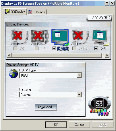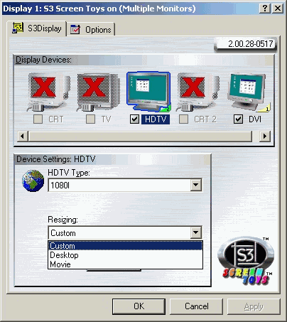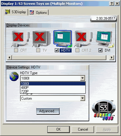 Отметим, что работа с HDTV возможна только в своеобразной вариации режима Clone с экстраполяцией разрешения на мониторе, расширенный рабочий стол в данном случае недоступен.