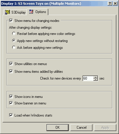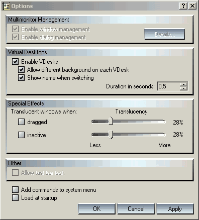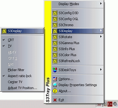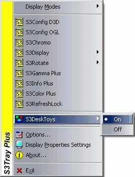 Создание и настройка виртуальных рабочих столов доступны только с помощью S3Tray Plus, где эта функция носит несколько легкомысленное название S3DeskToys.