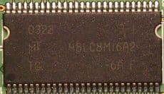Рядом с процессором находятся 32 МБ 6 нс памяти в двух микросхемах от Micron Technology, Inc.
