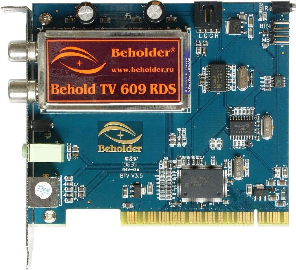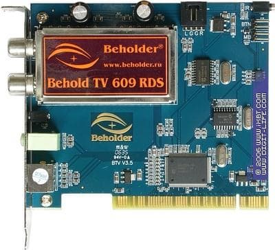 Примером противоположного подхода служит аналоговый Behold TV 609 RDS, дополнительные возможности которого имеют отношение только лишь к сервисным функциям (RDS, управление питанием компьютера, поддержка сторонних пультов ДУ). Классический ВЧ-блок Philips FM1216ME/I H-5 (Mk5), АЦП Philips SAA7135HL/101.