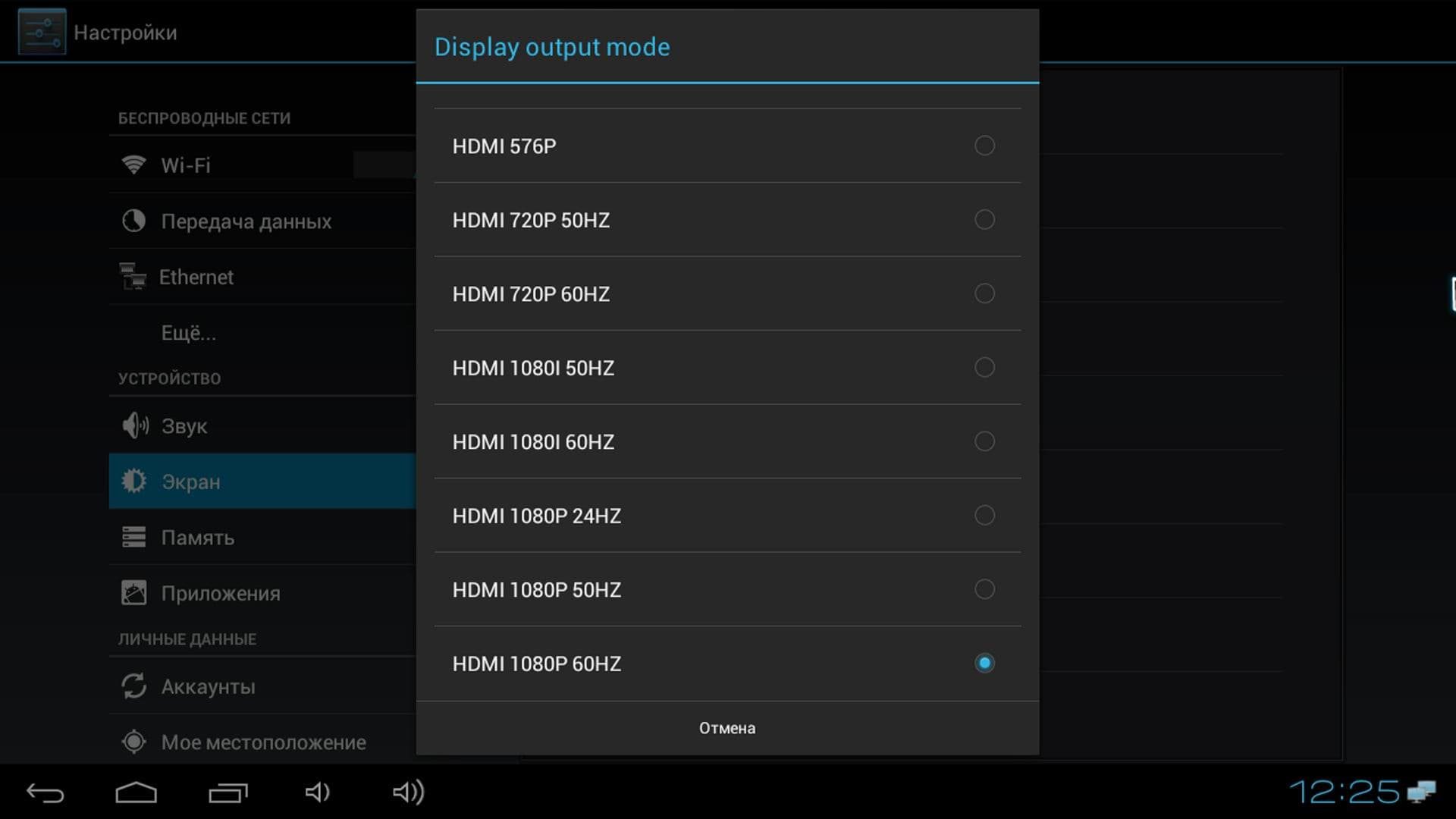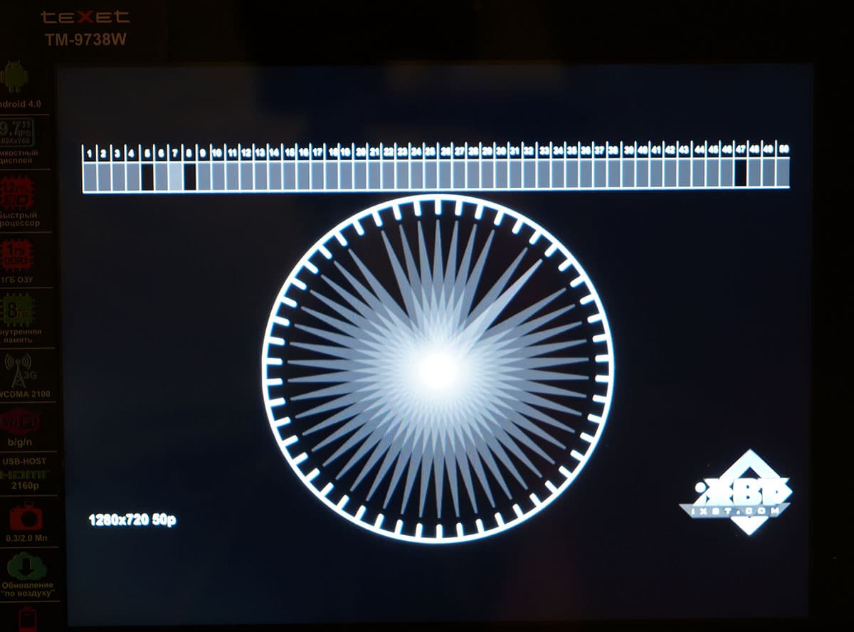 Странное дело. Одно и то же видео, а результат настолько разный. Быть может, дело в разных частотах видеосигнала? Отчасти верно, частоты действительно разные: имеющийся у нас планшет выводит на ТВ сигнал в стандарте 720 60p, иных настроек видеовыхода данный планшет не имеет. А собственный экран планшета работает на другой частоте — ее мы выясним позже.
