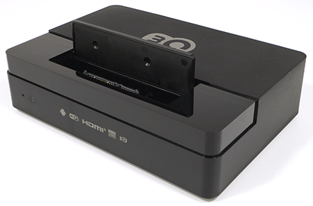 Какая-либо фиксация жесткого диска внутри корпуса плеера отсутствует — пожалуй, это в какой-то степени можно считать минусом. Дело в том, что подключенный HDD удерживается в углублении лишь за счет трения SATA-интерфейсных контактов. При сильном случайном ударе диск обязательно вывалится из ниши, но вряд ли кто-то размахивает руками в непосредственной близости от бытовой техники. Да и последствия такого экстренного «изъятия» диска вряд ли грозят катастрофой — за время тестирования диск несколько раз изымался при включенном плеере, что никак не повлияло на работоспособность диска или мини-ПК (хотя тут, возможно, у специалистов по HDD пойдут мурашки по коже).