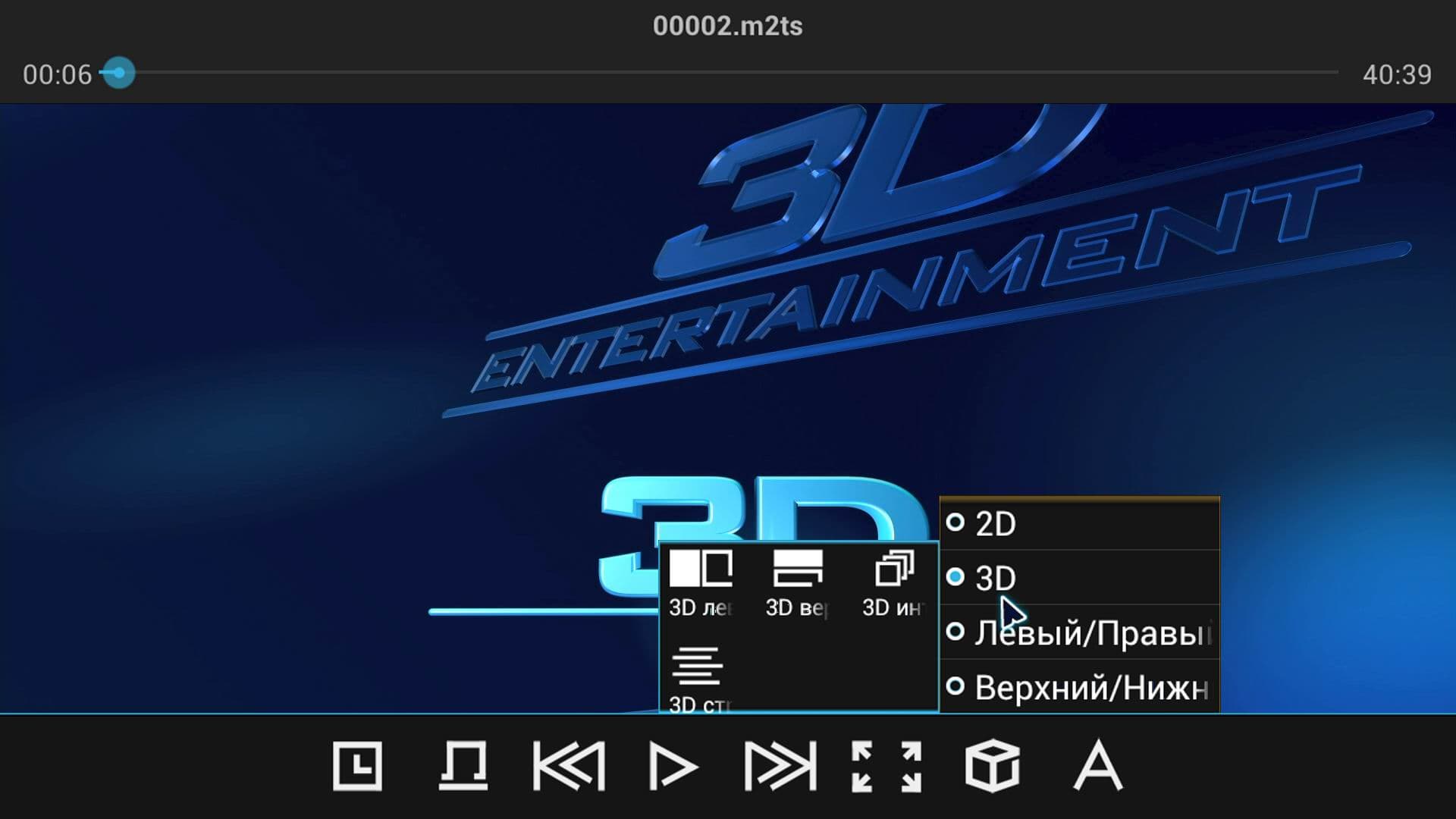 Сам этот плеер достаточно подробно изучен в обзоре iconBIT Toucan Manta, повторять данный материал не имеет смысла. Единственная проблема, которая покуда остается без исправления — этот программный 3D-плеер не умеет самостоятельно распознавать, какого типа контент он воспроизводит, 2D или 3D. Поэтому при каждом запуске очередного видеофайла приходится указывать тип видео, выбирая из всплывающего меню нужную опцию.