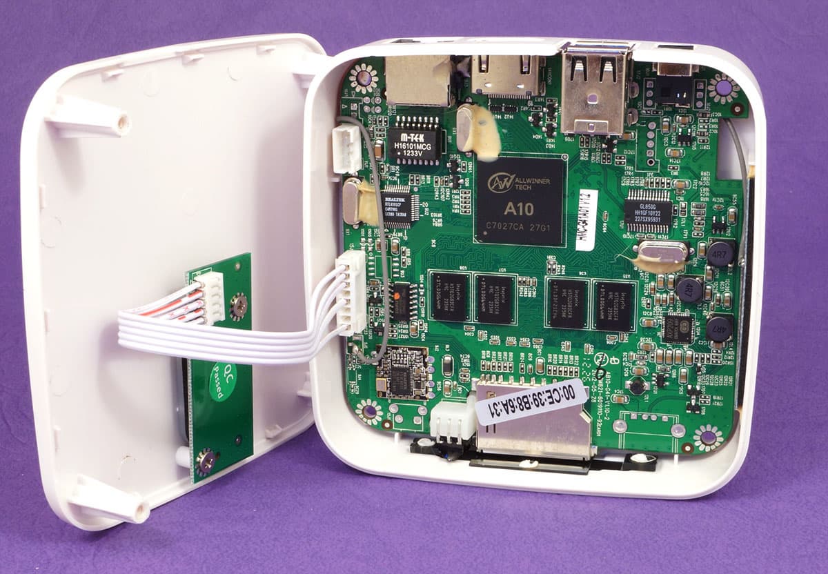 Печатная плата, на которой разместилась электроника, занимает всю площадь корпуса устройства. Никакой системы охлаждения здесь не имеется, ни активной, ни пассивной. Тем не менее, корпус приставки нагревается лишь до 35 °C, но и то после двухчасового воспроизведения «тяжелого» HD-рипа.
