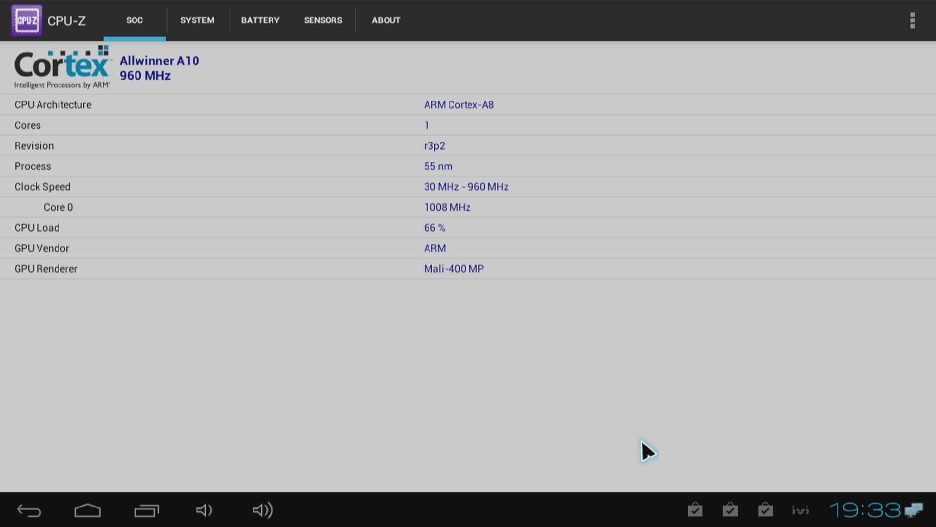| Чипсет | Allwinner ARM, Cortex-A8, 1 ГГц |