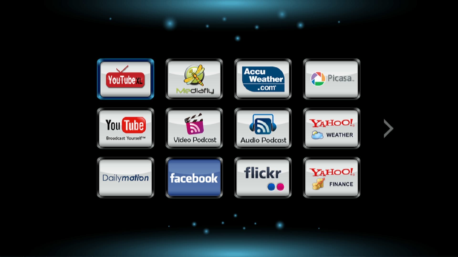Аппарат воспроизводит все известные контейнеры и форматы видеофайлов, доступные в Сети. Во время просмотра видео пользователь может нажатием кнопок Audio и Subtitle выбрать звуковую дорожку и поток субтитров.