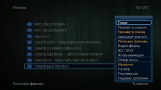 Помимо этого, браузер может быть трансформирован для отображения только нужных пользователю типов файлов: кино, музыка, фото. В зависимости от выбранного режима изменяются и команды всплывающего меню: