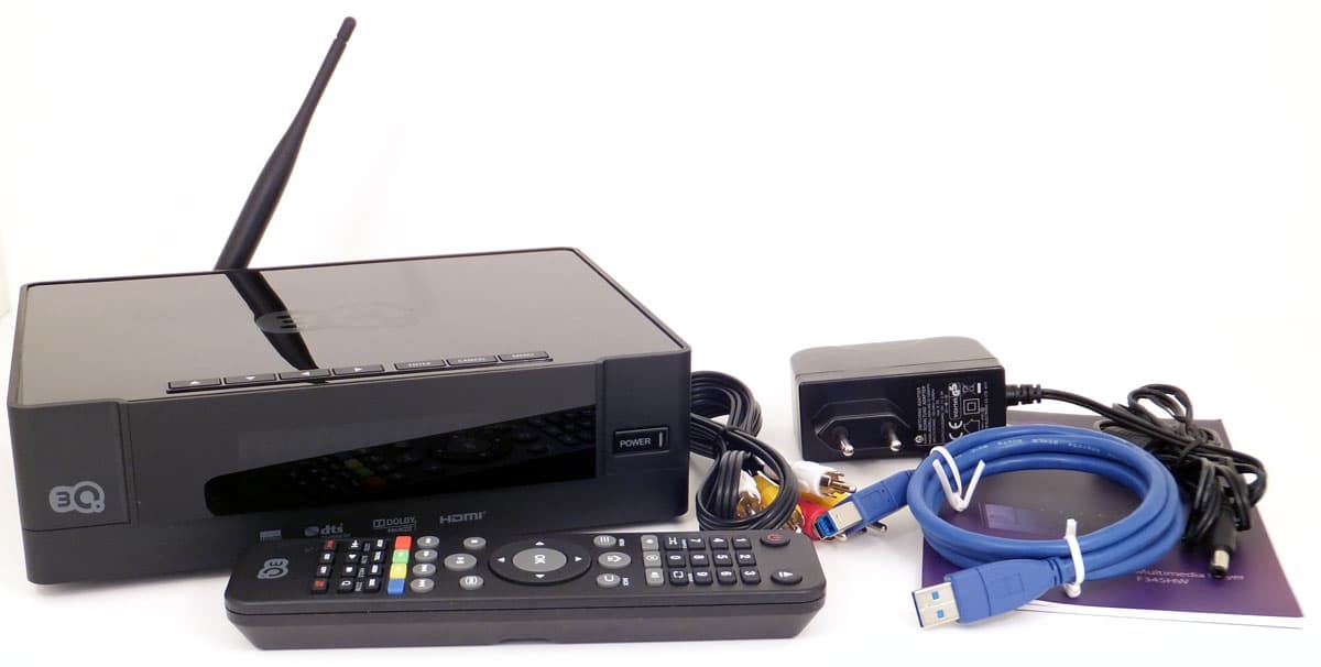 В комплекте к плееру поставляются инфракрасный пульт дистанционного управления, композитный аудио/видеокабель, адаптер питания, кабель USB 3.0 длиной один метр, краткая инструкция по эксплуатации на русском языке и несколько болтов для крепления жёсткого диска.