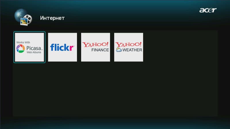 Интернет-службы включают в себя всего четыре пункта: Picasa, flickr, Yahoo! finance и Yahoo! weather.
