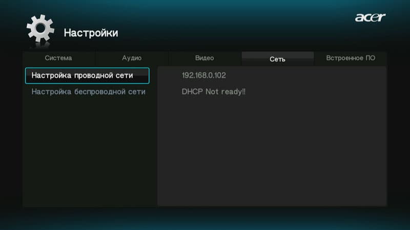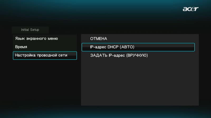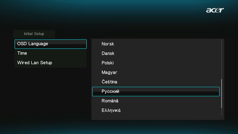 При первом включении плеера пользователь должен выбрать язык меню, установить текущие дату и время, а также определиться с настройками локальной сети.