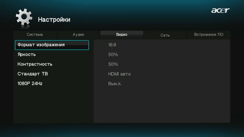 | Настройки видеовыхода | Сетевые настройки |