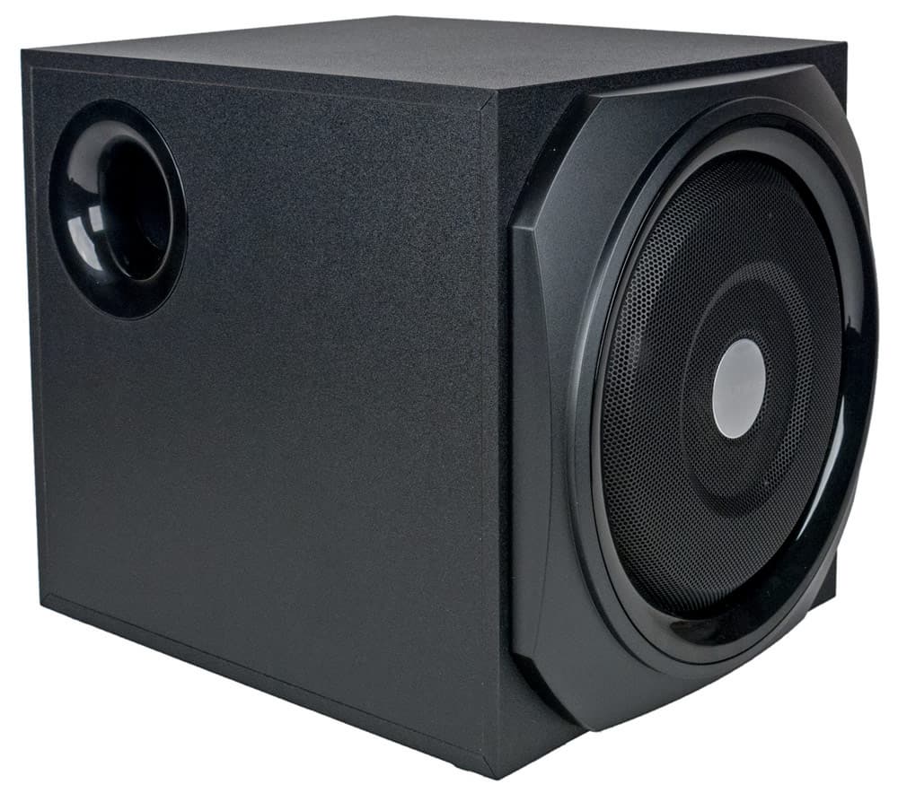 Наиболее слабым звеном в данном наборе является сабвуфер. Безусловно, его компактные размеры не позволяют использовать полноценный динамик, однако даже при таких ограничениях можно добиться лучшего результата. В данном случае звук имеет гулообразный и подвывающий характер, что вполне может объясняться недостаточно корректно спроектированным акустическим оформлением: как известно, bandpass требует точного расчета и тщательного изготовления.
