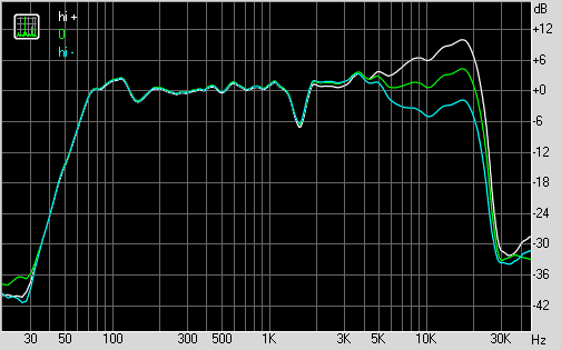 Наиболее любопытным в R1800T III является фазоинвертор. Благодаря тому, что он правильно спроектирован, звучание в НЧ диапазоне хорошо насыщено и имеет сравнительно низкую граничную частоту. Для своих небольших габаритов R1800TIII прекрасно озвучивают нижний диапазон. Кроме того, в R1800T III имеется большой запас по регулировке НЧ, а если посмотреть на наши измерения АЧХ, то видно, что регулятор усиливает только самый низ, при этом средние частоты практически не затронуты. В звучании колонок на низких частотах присутствует гулообразный характер, однако этот недостаток проявляется главным образом при избыточном уровне баса, к тому же паразитного гула на средних частотах не наблюдается. Вместе с тем запаса по регулировке высоких частот у колонок практически нет.