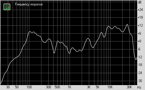 АЧХ колонок Microlab FC30 в целом выглядит неплохо и демонстрирует неравномерность ±6 дБ во всем диапазоне.